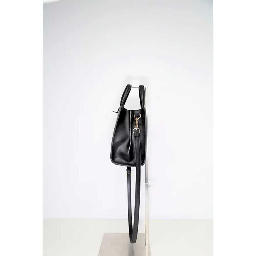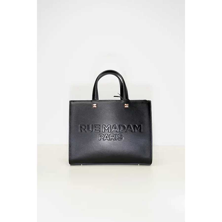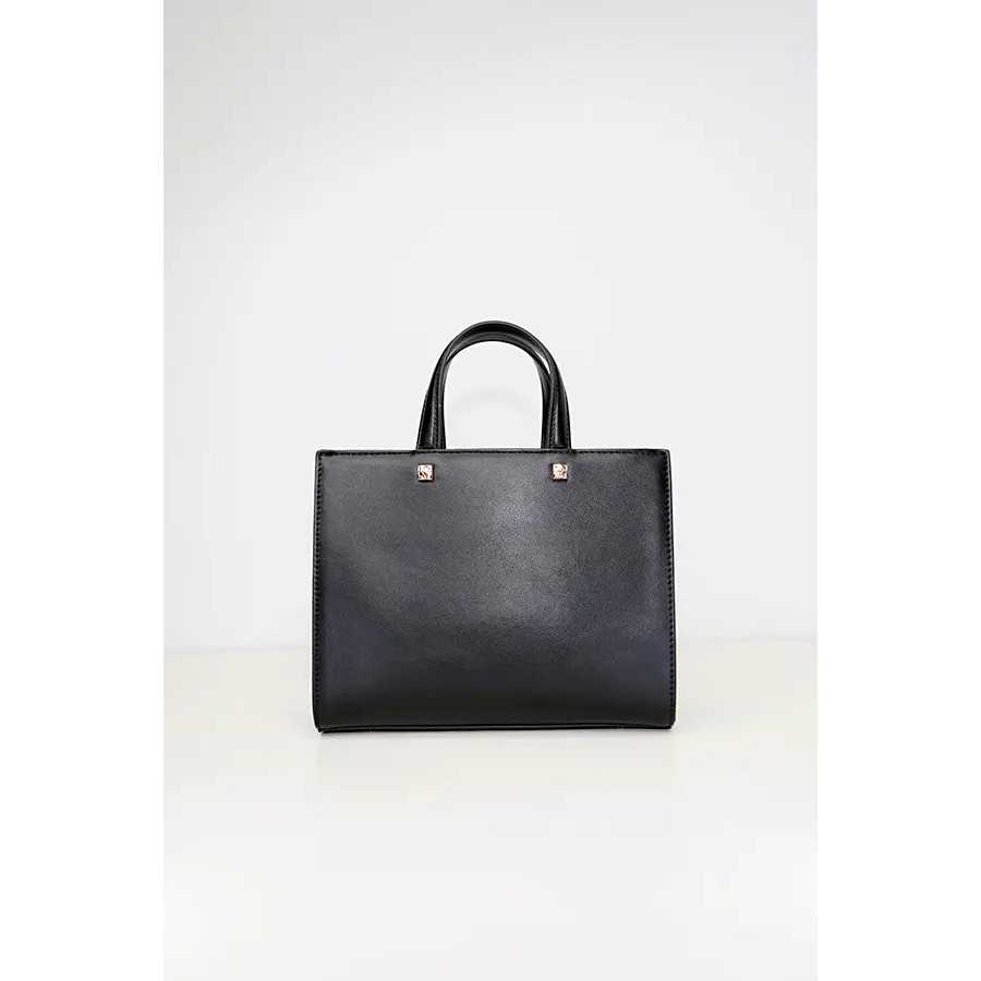 Mini bolso Tote de ecopiel vegana con logo en relieve y tachuelas metálicas. Incluye bandolera extraíble e interior forrado de algodón con bolsillo. Medidas: 23x18x11 cm. Elegante, práctico y sostenible.