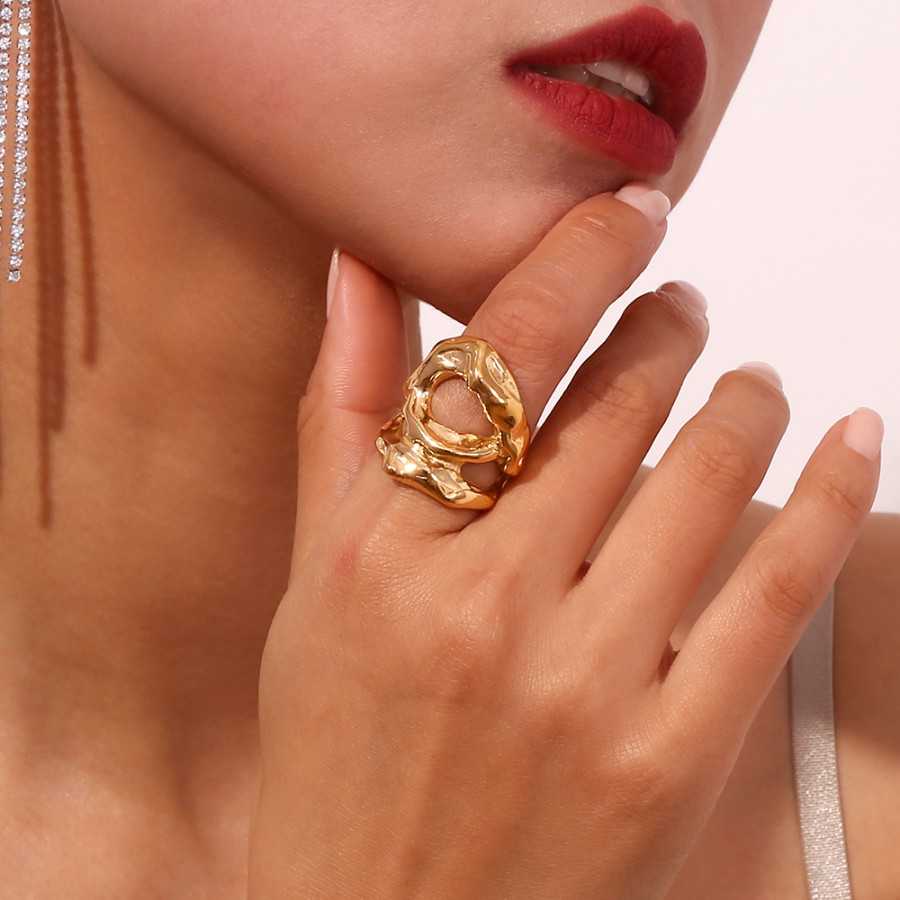 Añade un toque de sofisticación a tu estilo con este exclusivo anillo fabricado en acero inoxidable 316L, conocido por su durabilidad y calidad superior. Su diseño hipoalergénico lo hace ideal para pieles sensibles, asegurando confort durante todo el día. El acabado en color oro resalta su elegancia, convirtiéndolo en una pieza imprescindible para quienes buscan destacar con un accesorio de lujo. Con un grosor de 23 mm, este anillo presenta un diseño audaz que combina modernidad y exclusividad. Libre de níquel y plomo, es una opción segura y responsable para complementar cualquier atuendo. Perfecto para ocasiones especiales o para añadir un toque de glamour a tu día a día, esta joya es sinónimo de estilo refinado.