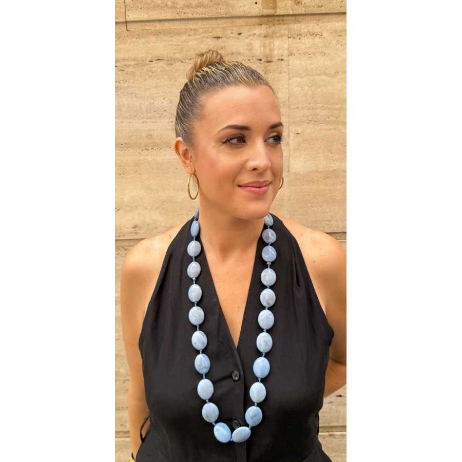 Collar resina largo en color azul mar. Estiloso, válido para todas las estaciones. Queda precioso con cualquier look y muy combinable.