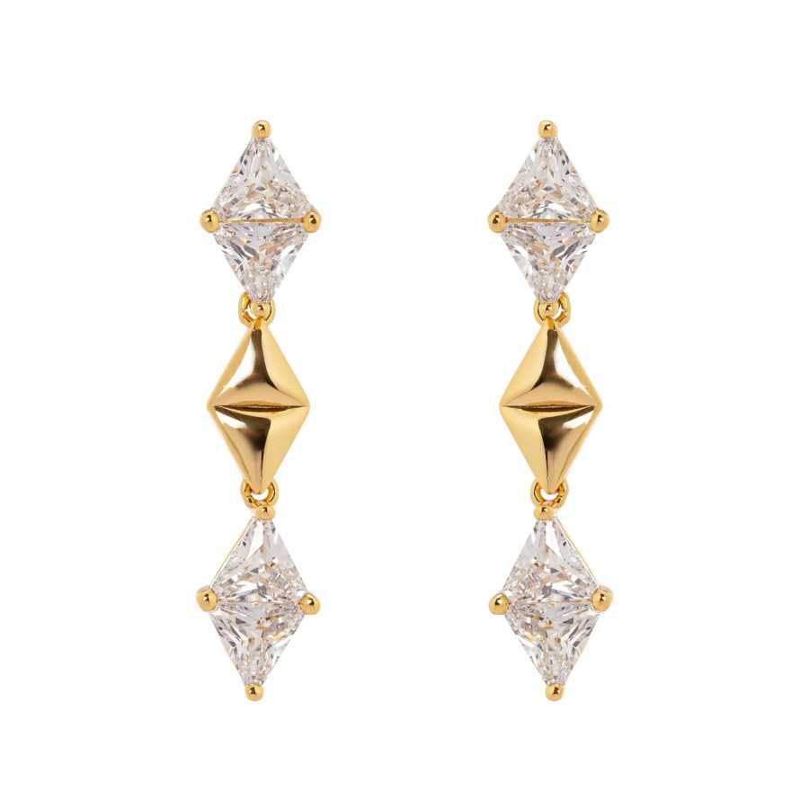 Pendientes dorados con diseño geométrico y brillantes. Ligeros y elegantes.